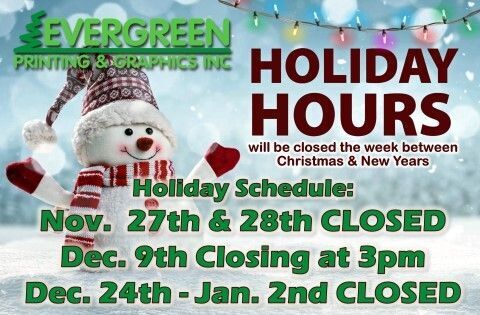 Evergreen Printing and Graphics has been serving businesses and individuals like you all around Snohomish County since 1979!! Locally owned and operated, customer service is our top priority. If you're looking for a top-quality custom printer, look no further. We'll work with you every step of the way as part of our unwavering commitment to exceed your expectations.